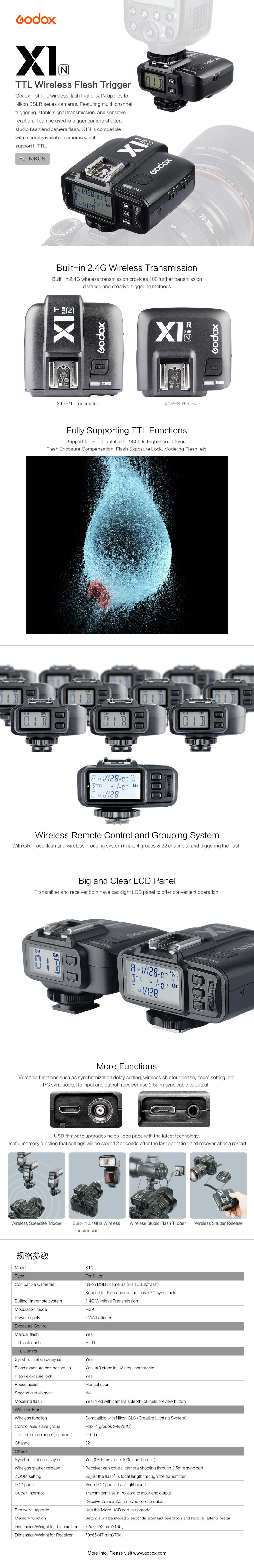 - Built-in Godox 2.4G Wireless X System